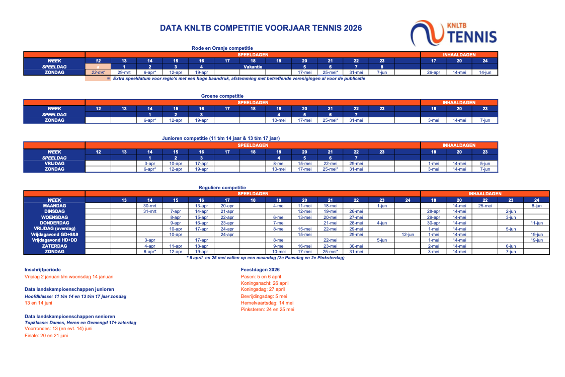 Hieronder staan de speeldata en de inhaaldagen. Geef je snel op!